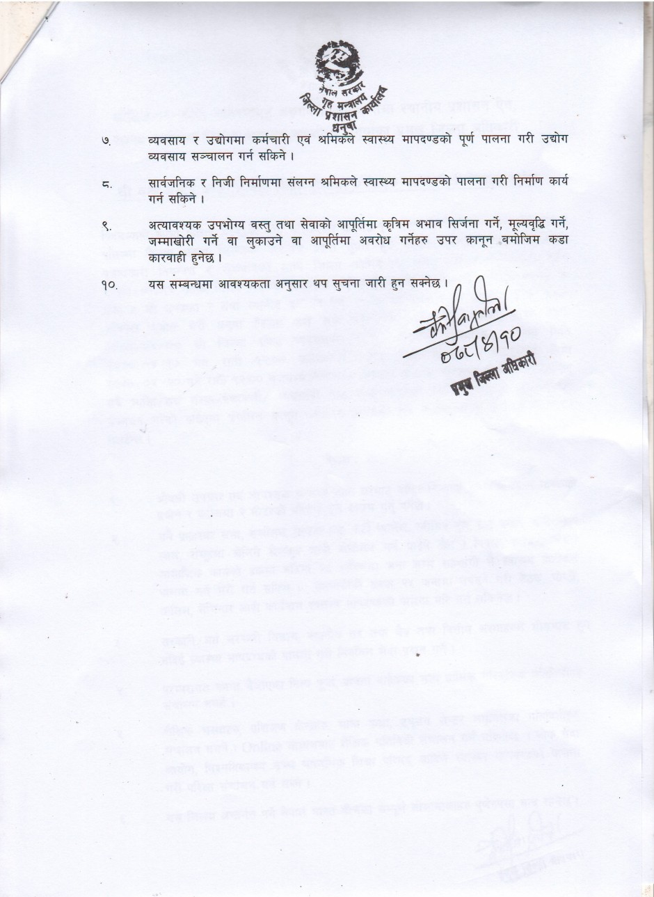 | जिल्ला प्रशासन कार्यालय धनुषाबाट अवधि थप गरि जारी गरिएको निषेधाज्ञा आदेश |