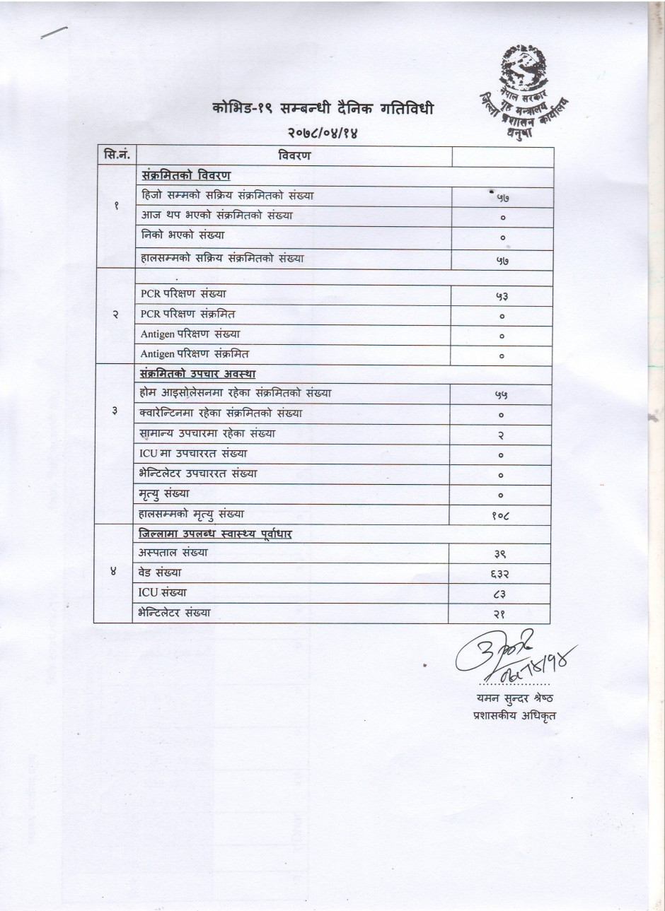 २०७८/०४/१४ काेभिड १९ सम्बन्धी दैनिक गतिविधी